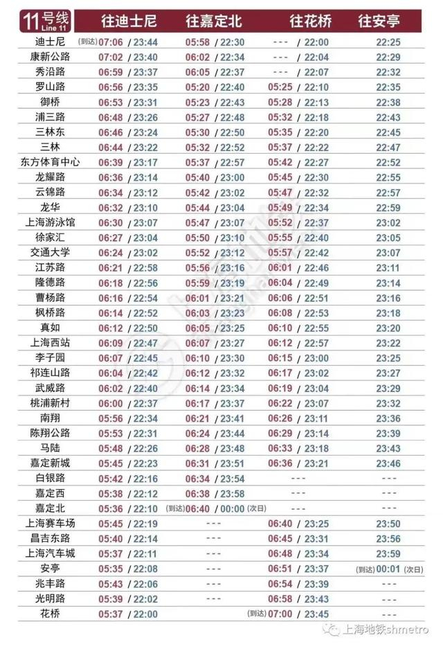 上海地铁11号线首末班车时刻表