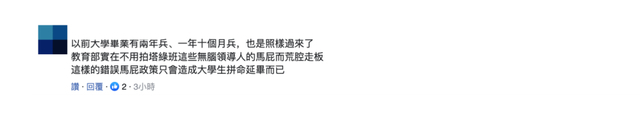 教育部门实在不用拍塔绿班这些无脑‘领导人’的马屁而荒腔走板,这样的错误马屁政策只会造成大学生拼命延毕而已。”↓