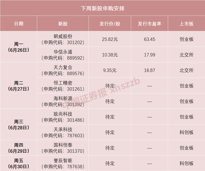 根据新股发行安排,下周有9只新股申购,包括2只科创板新股、5只创业板新股、2只北交所新股。