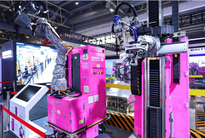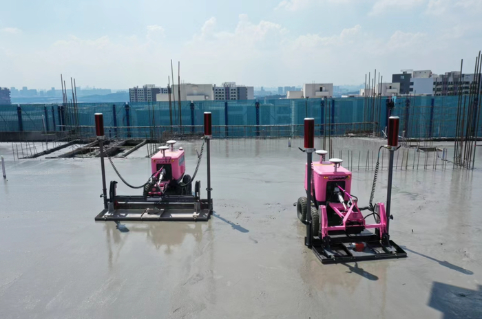 博智林本次参展的建筑机器人有主体结构阶段的机器人搭档:布料机器人、地面整平机器人,双机联动在高强度混凝土浇筑阶段实现了降本增效、提升质量、降低劳动强度等技术革新目标。