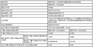 国泰中债1-5年政策性金融债指数证券投资基金分红公告