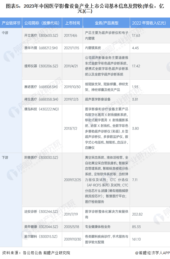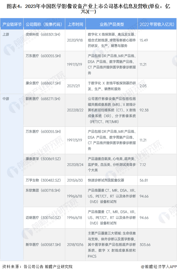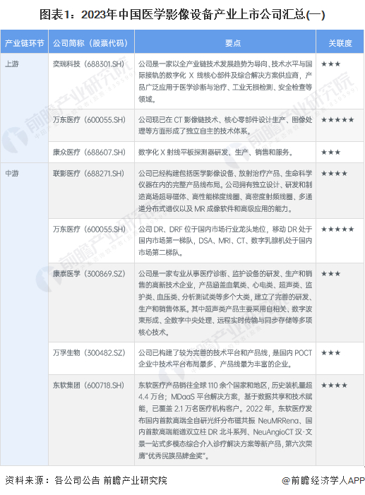 1、医学影像设备产业上市公司汇总