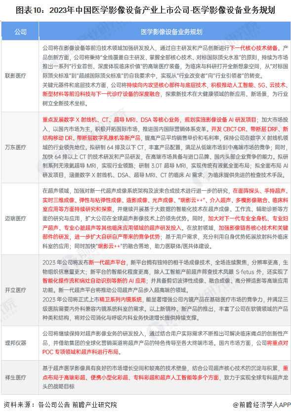 4、医学影像设备产业上市公司医学影像设备业务规划对比
