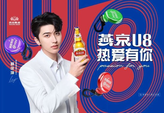 U8一推出,燕京啤酒即请来王一博代言造势,去年,耿超团队又邀约蔡徐坤,担任U8创意总监与代言人。