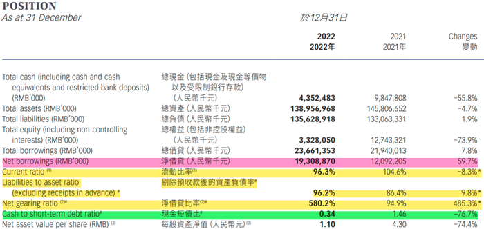 截至2022年底,建业地产的总借贷236.61亿元,同比增长7.8%;净借贷193.09亿元,同比大增长59.7%。