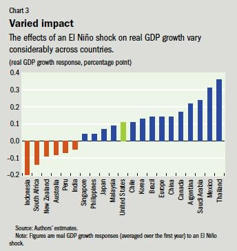 报告称,厄尔尼诺现象对不同地区的经济影响存在较大差异。主要经济体中澳大利亚、智利、印度、印尼、日本、新西兰和南非的经济活动都会因为气候冲击而短暂下降。