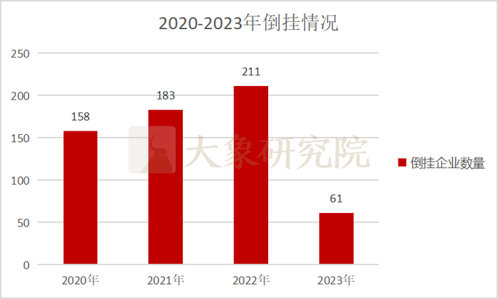 通过比对,我们可以发现,随着新股破发频发,二级市场倒挂现象加剧。仅2022年上市的企业就多达211家出现倒挂情况。2023年目前也就上市了159家,竟也有近4成企业在上市后就出现股价下跌。