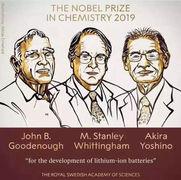 2019年10月9日,2019年诺贝尔化学奖颁给了约翰·B·古迪纳夫(John B. Goodenough)、M·斯坦利·威廷汉(M. Stanley Whittingham)、吉野彰(Akira Yoshino),以表彰他们对发明锂离子电池做出的贡献。