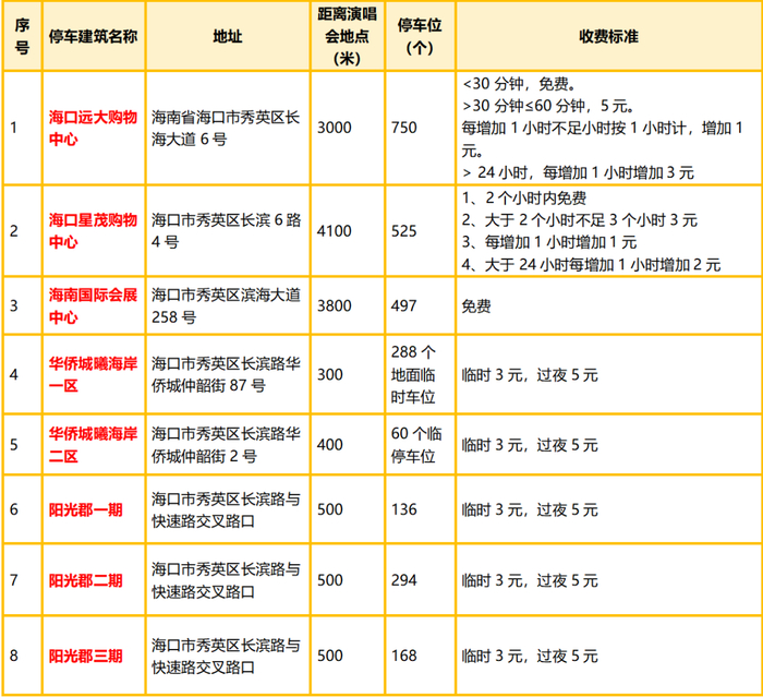 演出地点:海口五源河体育场(附近停车场车位有限,倡导绿色出行,建议观众尽量选择乘坐公共交通)