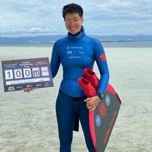 徐童彤获得CWT(恒重单蹼)下潜100⽶的好成绩