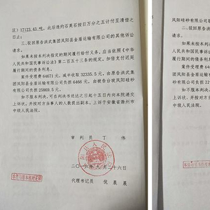 这两份判决书均由安徽省滁州市凤阳县法院作出,案号同为(2016)皖1126民初2325号,但两份判决书作出的时间相差两天:其中一份作出的时间为2016年9月26日(为方便表述,该份判决下称“26日判决书”),另一份为2016年9月28日(下称“28日判决书”)。其中,“26日判决书”的判决结果比“28日判决书”多了一项——被告于判决生效后五日内赔偿原告石英石1.7万余吨。