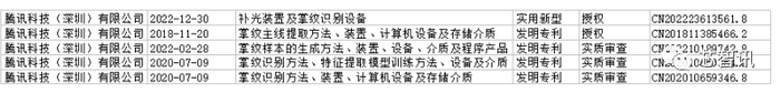另外,从之前曝光的资料显示,构成掌纹识别产品的核心是AI算法和感知芯片。目前这两项技术在国内均已成熟。在AI算法上,国内的两大科技巨头腾讯微信和阿里支付宝早已布局。比如腾讯优图实验室在去年8月就联合合肥工大、上海交大等高校提出通过几何模型合成数据,来预训练掌纹识别模型。专利布局方面,自2018年以来,腾讯已经陆续获申请了多项与掌纹识别相关的专利。阿里的支付宝技术团队也在去年进行掌纹支付算法的研发。从结果来看,腾讯率先一步实现技术落地。