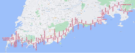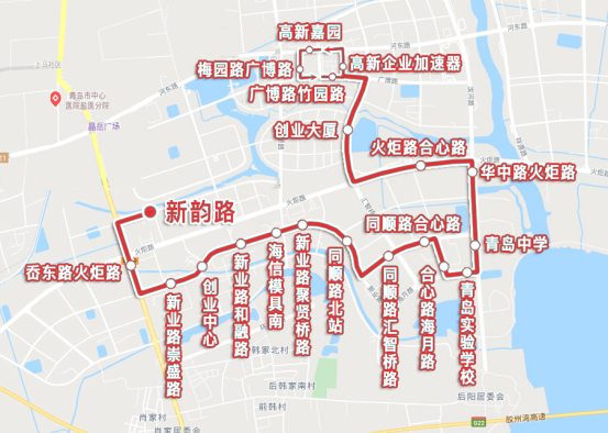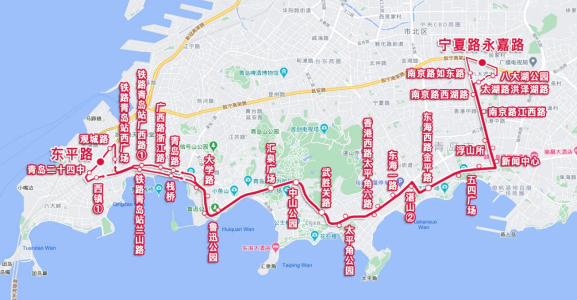 主要途经崂山路、九水东路、松岭路、滨海公路等道路。