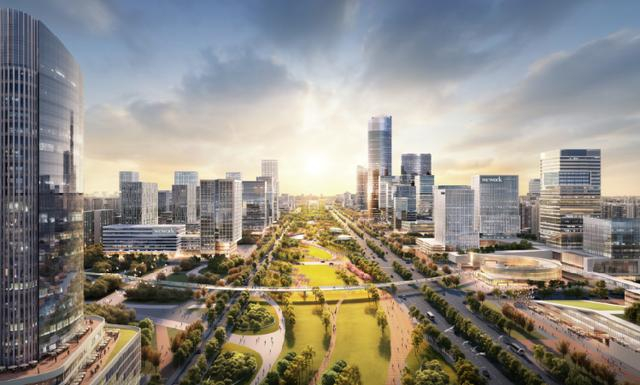 国际科创组团:围绕中轴公园、中央公园等景观资源,打造低密国际前沿科技研发总部、艺术文化中心。