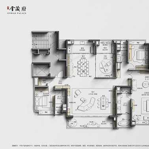 建面约222㎡五房三卫户型:南北双阳台,其中南向三房一卫带独立阳台设计,客餐厅设置在北侧且带约1.75米的大尺度观景阳台;南向主卧带有独立衣帽间,带有双台盆+浴缸等;