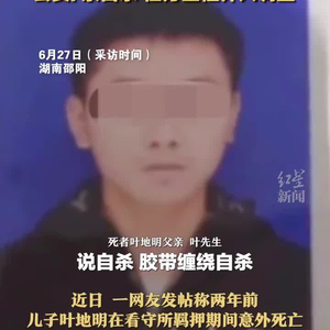 【19岁男子羁押期间死亡家属提起国家赔偿,公安:系自杀检方全程介入调查】6月27日,湖南邵阳。近日,一网友发帖称两年前儿子叶地明在看守所羁押期间意外死亡,家属对调查结果无法认同,并向法院提起国家赔偿。2021年2月,叶地明涉嫌故意伤害罪被当地公安刑事拘留,羁押在邵东市看守所。同年6月3日,叶地明在看守所内自杀,6月5日,因抢救无效死亡,死因系胶带缠绕口鼻导致窒息。2021年8月,邵东市人民检察院认定叶地明系自杀身亡,少数民警、辅警责任心不强,履职不到位是本次被监管人死亡事故发生的直接原因。针对家属质疑,2023年6月27日,邵东市公安局工作人员回应,叶地明自杀一案由检察院全程介入调查。2022年,叶先生向法院提起诉讼,请求国家赔偿。2023年3月17日,湖南省高级人民法院对国家赔偿一案进行立案复查。
