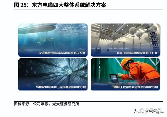 LS 电缆:LS 电缆于 1962 成立,开发、生产、提供从日常生活到产业整体使用 的电缆和相关解决方案。目前向北美和南美、欧洲、中东、亚洲等世界各主要电 力、通信公司等提供海底电缆、超导电缆、超高压电缆、通信电缆等尖端产品。住友电工:成立于 1897 年 4 月,主要在汽车、信息通信、电子、环境能源和产 业原材料 5 个事业领域为社会和生活的发展作出贡献。古河电工:公司以“金属”、“塑料”、“光”、“高频电子”4 项技术为核心, 在信息通信、能源、汽车、电子零部件、建设和建筑、新事业及开发产品等六个 事业领域,开发出多种类型的产品。