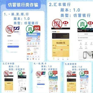北京商报讯(记者 孟凡霞 实习记者 周斌)伴随着网络技术的快速发展和普及,网络新型诈骗套路也花样百出。针对一些涉诈类的仿冒银行App诈骗,多地监管部门和警方时时进行反诈提醒。6月27日,工信部反诈专班微信公众号公布了一批仿冒银行类诈骗App,包括浦发银行、汇丰银行等手机银行App均存在仿冒情况。