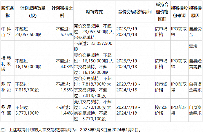 龙芯中科股东减持计划