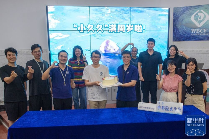 当日是中国科学院水生生物研究所白鱀豚馆人工饲养的小江豚(编号为F9C22)周岁生日,武汉市农业农村局、中科院水生所和武汉白鱀豚保护基金会在白鱀豚馆为小江豚庆生。