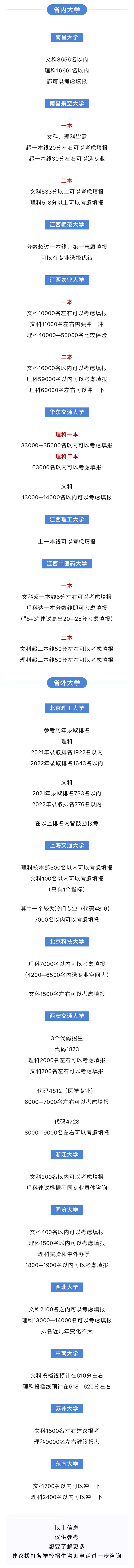 全国多所知名大学录取参照线来了!江西考生必看!