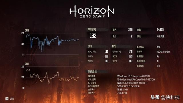 在《地平线:零之曙光》1080P+预设终极质量画质下,平均帧数为132 FPS。