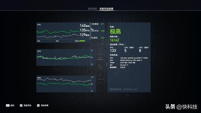 在《刺客信条:起源》1080P+预设极高画质下,平均帧数为133 FPS。