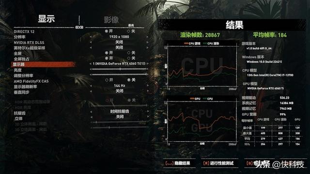 在《古墓丽影:暗影》1080P+预设最高画质+DX12,平均帧数为184 FPS。
