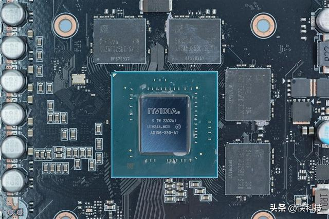 中间的是AD106-350 GPU芯片本体,面积为185mm2,拥有229亿晶体管。