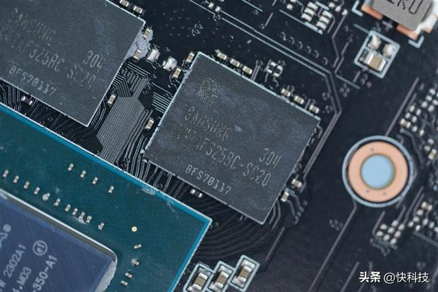 围绕在GPU四周的是4颗三星GDDR6显存,单颗2GB,共组成了8GB的总容量。
