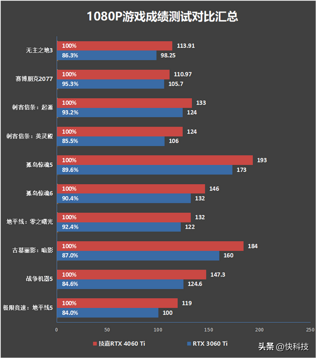 对比公版RTX 3060 Ti显卡,技嘉猎鹰RTX 4060 Ti Eagle显卡在不同的游戏项目中提升5.0%~19%不等,整体平均提升幅度12.6%,变化还是非常明显的。
