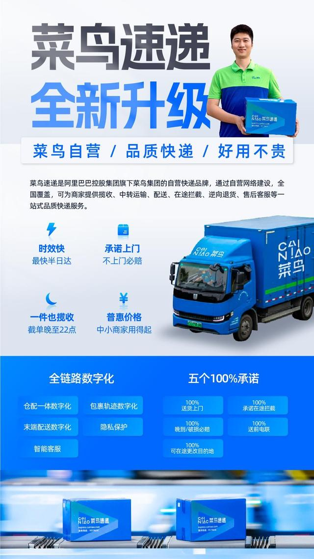 就在6月28日,菜鸟宣布,菜鸟集团宣布推出自营快递菜鸟速递,承诺送货上门不上必赔、时效最快半日达、夜间揽收等。