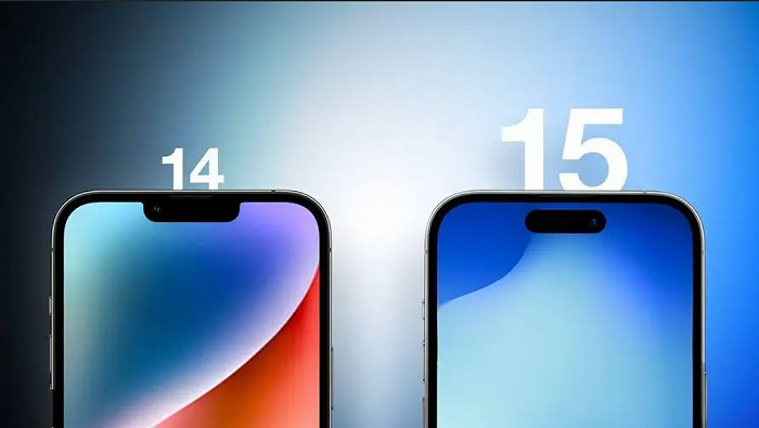 从外观设计来说,两者最大的区别是iPhone 14的正面采用了经典的刘海设计,iPhone 15则采用了药丸形状设计,这使得手机屏幕显示区域更大,观看视频和浏览网页更加舒适自然。
