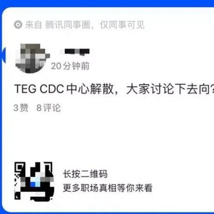 6月28日,网传腾讯TEG CDC (技术工程事业群用户研究与体验设计部) 整体解散,人员涉及设计师、开发人员等,规模大约为数百人。