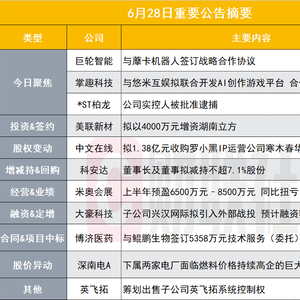 巨轮智能公告,公司与芜湖藦卡机器人科技有限公司(简称“藦卡机器人”)签订了战略合作协议。合作内容包括公司在市场同等条件下,以最优惠价格、优先向藦卡机器人提供RV减速器及其零部件;藦卡机器人计划向公司分批次采购约5万套RV减速器,首批采购数量约3000套等。