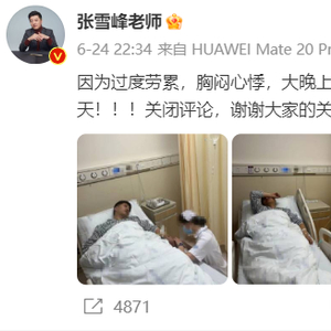 6月24日,网红报考指导老师张雪峰在社交平台上发文表示,自己因为过度劳累被送医治疗,同时关闭评论。