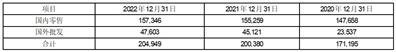 库存商品主要包括国内零售库存和国外批发库存,2022年末,国内零售库存较上年末增加2,087万元,增幅1.34%,基本持平;国际批发业务库存较上年末增加2,482万元,增幅5.50%。