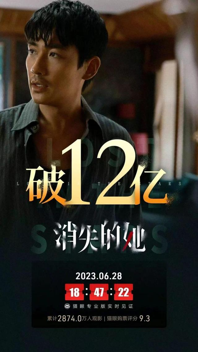 电影市场又见现象级黑马。据猫眼专业版数据,截至6月28日18时47分,电影《消失的她》在正式上映6天后票房破12亿元,目前已升至年度票房榜第四名。在社交平台上,该片更是热搜不断,据猫眼专业版统计,截至6月28日14时,影片全网热搜已达1188个,“泰国孕妇坠崖案当事人谈电影《消失的她》”等话题把关注点燃烧到电影之外,俨然有全民热议之势。猫眼专业版对该片内地总票房的预测已上调至33亿元。