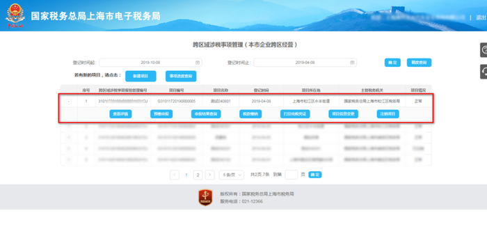 五、受理成功后,在模块首页会以列表形式生成项目记录,点击该项目,可对该项目其他事项进行操作。