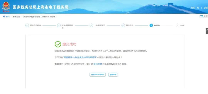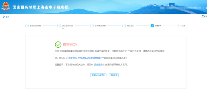 三、本市跨区经营流程推送至项目所在地主管税务机关受理;