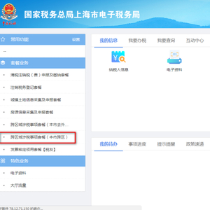一、登录电子税务局,通过【套餐业务】——【跨区域涉税事项套餐(本市跨区)】;
