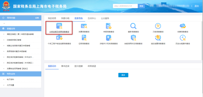 四、查询受理进度;进入首页,点击【我要查询】——【办理进度及结果信息查询】,税务机关予以受理后,纳税人点击【查看】,可以下载《跨区域涉税事项报验表》、《建筑业工程项目情况统计表》、受理通知书;
