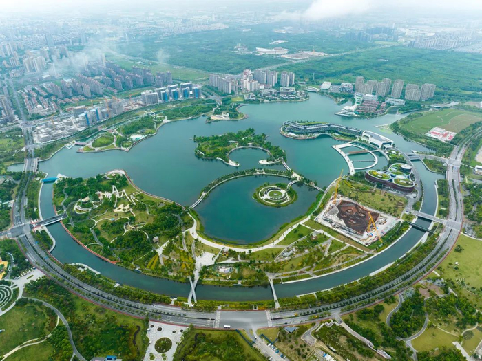 上海之鱼2、5号桥已完,将于第三季度对外开放。2号桥位于“上海之鱼”金海湖西南角,跨径31米。该桥梁为纵横梁现浇混凝土桥,以扩大景观界面为目的,放大桥身中段使桥身呈纺锤型,曲线造型拉长行人的景观界面,桥上看水景,桥下看桥景,桥和环境一起形成了新的景观。5号桥位于“上海之鱼”南端,跨径35米。该桥梁为钢拱+混凝土悬带组合桥,设计理念为“近水”,将人行桥下荡贴近水面,与钢拱桥之间形成一个上拱下弯的眼睛形空间,通过这个空间,人行桥两侧的行人可相互欣赏对面的风景,为“上海之鱼”的桥梁又增添一笔趣味。