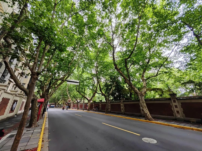 盛夏已至,愚园路又迎来了最美的季节。一到夏天,作为市级林荫道的愚园路便成了人们休闲避暑的好去处。道路两侧交错环抱的梧桐树围成一条长长的密林弯道,为过往的行人遮住烈日的炙烤,枝隙间的光影在微风的裹挟下洒在石砖上,给人以闲庭信步的空间。