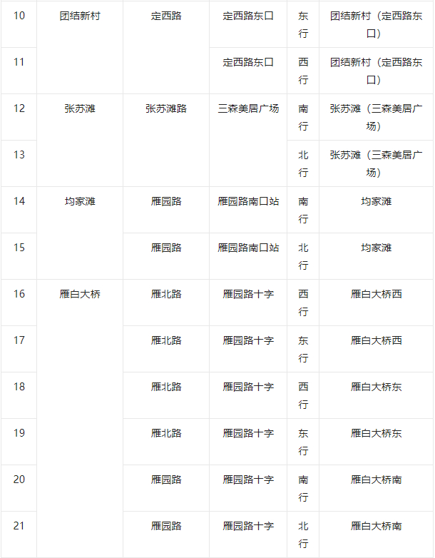 (十一)雁园路十字(商会大厦)北行站,恢复轨道雁白大桥站D口设站停靠。