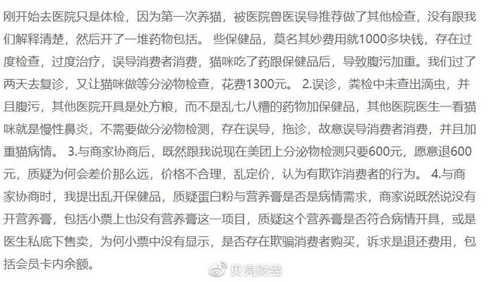 养猫人士钟先生告诉奥一新闻记者,此前他家的猫咪因为呕吐,送去医院做检查时就花去1000元。奥一新闻在黑猫投诉平台搜索,同样发现不少宠物医院存在收费不透明、诱导消费的情况。