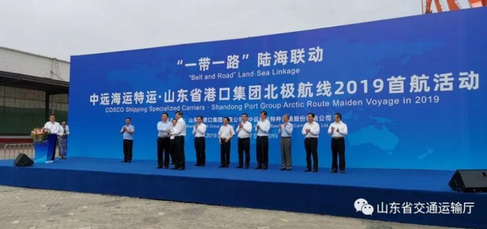 2019年9月,山东省港口集团和中远海运特运合作,从芬兰赫尔辛基运回近3万吨纸浆到青岛港,北极航线实现首航。