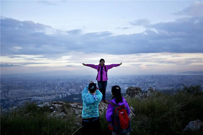 6月16日,昆明长虫山再次正式对外开放,不少人来这里“打卡”浪漫日落。