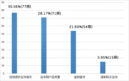 2021年1月1日至2023年6月1日,深圳市、区消委会收到关于延保服务的投诉共计252宗,消费者反映主要问题表现为拒绝提供延保服务、延保期产品质量差、虚假宣传、强制购买等。