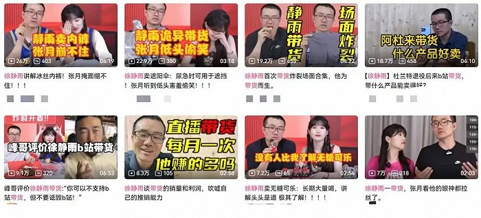 而徐静雨和张月本身的粉丝体量并不足够庞大,男性受众向来也不是直播带货的主要客群,但却因视频切片意外产生了出圈效应。
